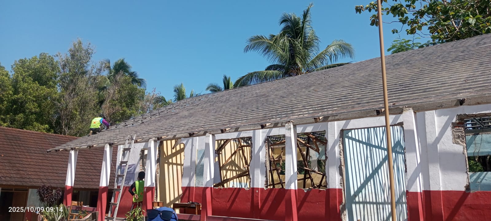 Menurut nya, apakah itu sudah mendapat persetujuan dari pengawas/ konsultan bangunan, bagian atap tidak di ganti, padahal untuk 4 ruang kelas, dan satu bangunan di belakang sekolah, tapi anggaran sangat fantastis, ujarnya.