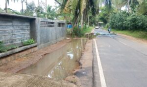 Lebak,CNO – Ruas jalan Cibayawak – Sawarna – simpang Ciawi perlu perhatian pemerintah kabupaten Lebak Banten.Ruas jalan tersebut sangat minim pemeliharaan drainase, seperti yang terjadi di ruas jalan villa Biru Pulo Manuk, sebelum pertigaan simpang Pulo Manuk, keadaan drainase nya tersumbat, sehingga air masuk ke badan jalan, Rabu, 25/6/25.