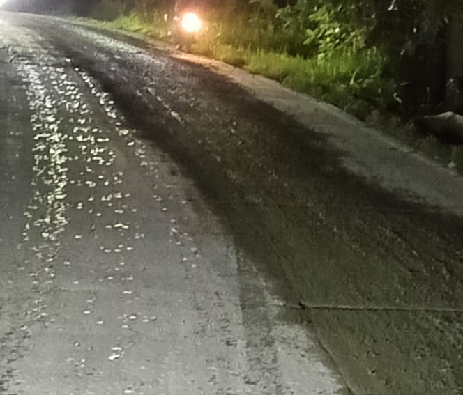 Jalan Nasional Bayah – Cibareno Dipenuhi Tumpahan Beton, Keselamatan Pengguna Jalan Terancam