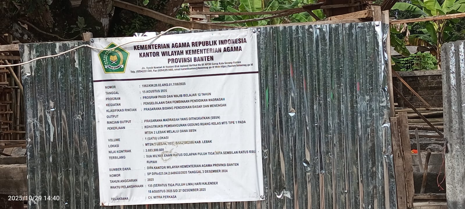 Sementara itu, Solihin, perwakilan dari CV Mitra Perkasa selaku kontraktor proyek, memastikan bahwa pekerjaan akan selesai sesuai dengan waktu yang telah ditentukan, yaitu pada bulan Desember 2025.