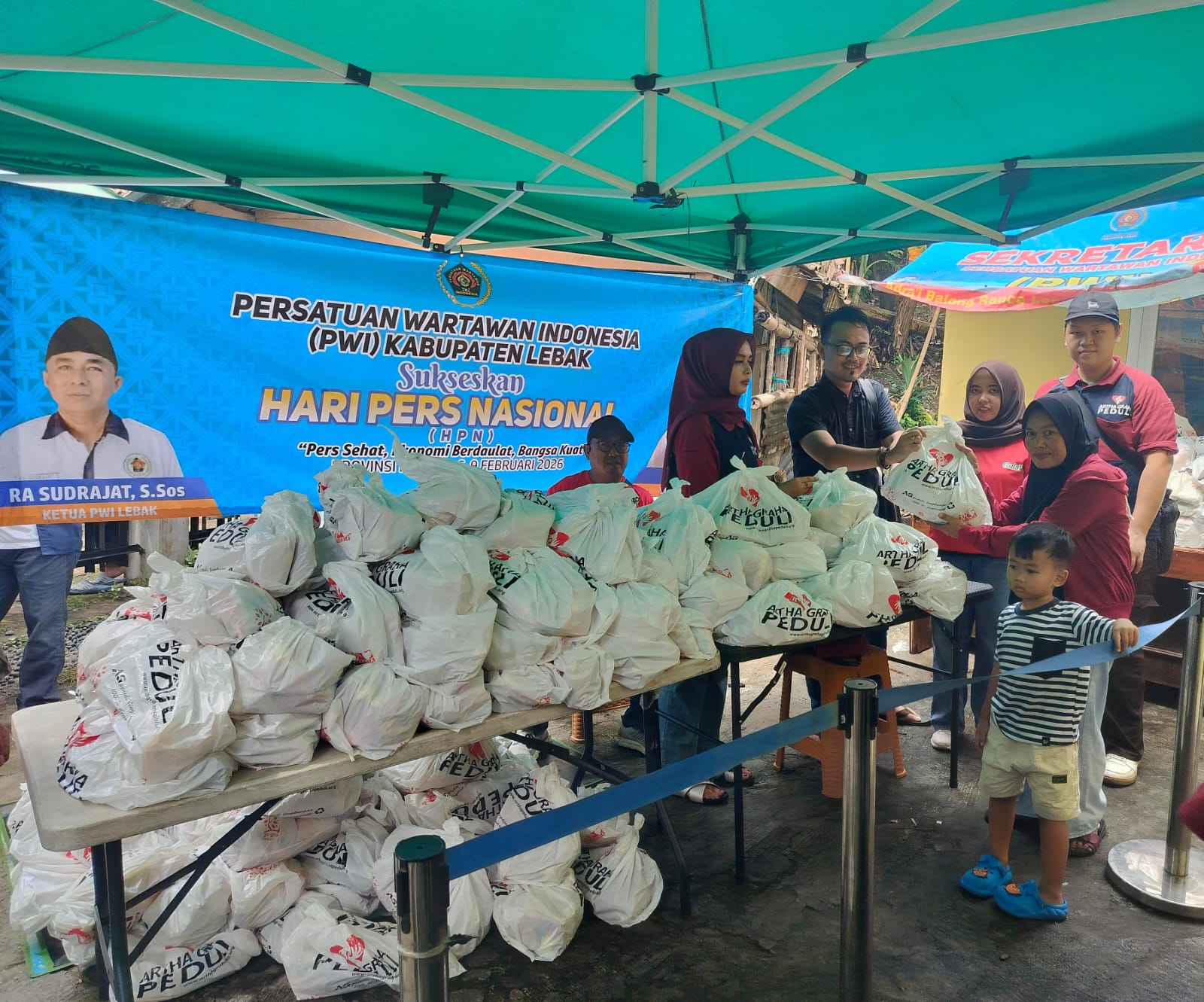 LEBAK, CNO – Dalam rangkaian peringatan Hari Pers Nasional (HPN) 2026, Persatuan Wartawan Indonesia (PWI) Kabupaten Lebak, Provinsi Banten bekerja sama dengan Artha Graha Group melalui Arta Graha Peduli menyalurkan 300 paket sembako kepada masyarakat kurang mampu di Kabupaten Lebak.